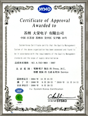 最近于2008年完成修改工作,正在运用ISO9001:2008审查标准。